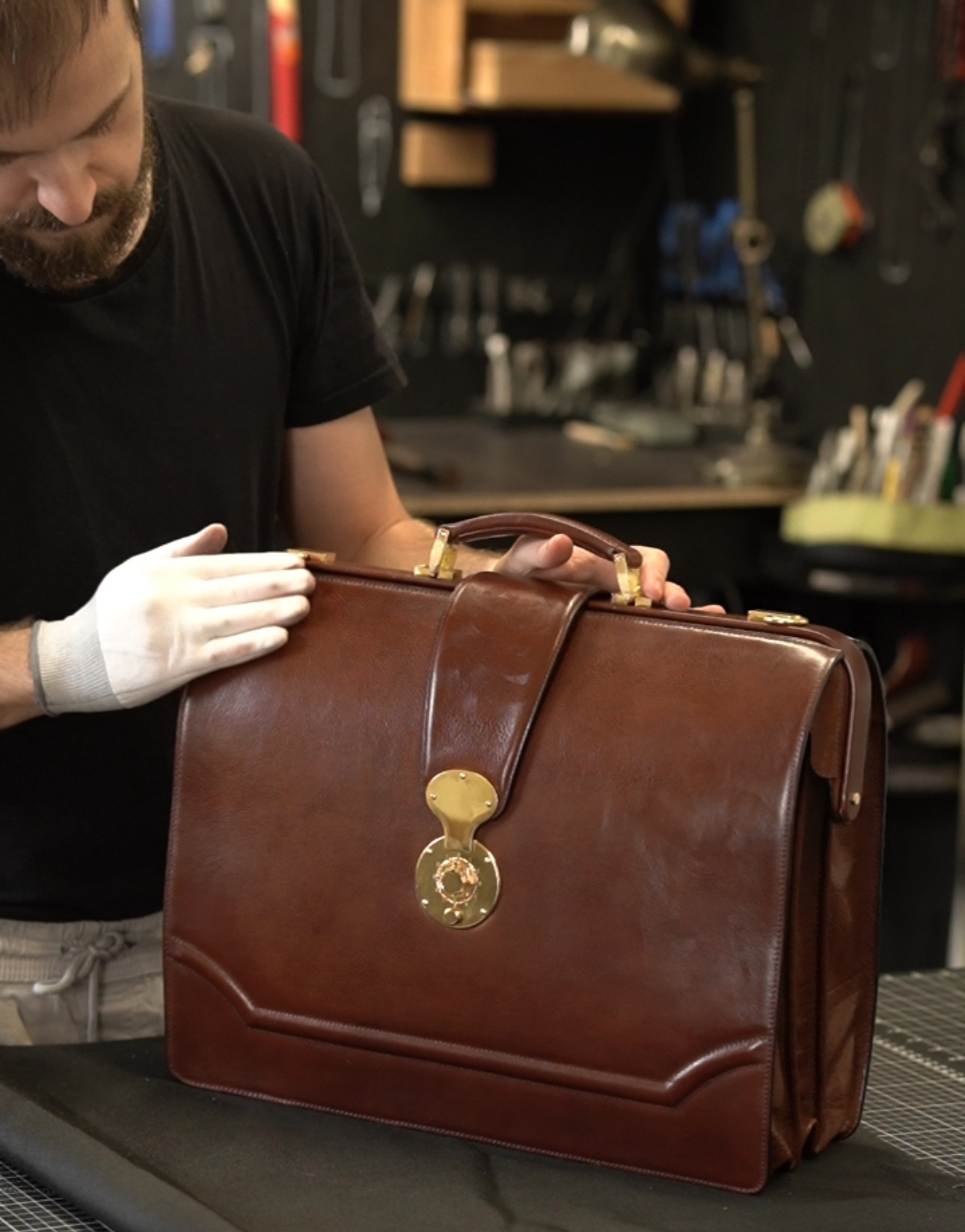 Each product is crafted entirely by hand, step by step, in our workshop. We don’t rely on production lines or assembly belts. A single bag can hold as many as 35 hours of precise, focused work — from the first cut of leather, through stitching, to the perfect finishing of every edge. It’s a process that cannot be rushed without sacrificing quality.